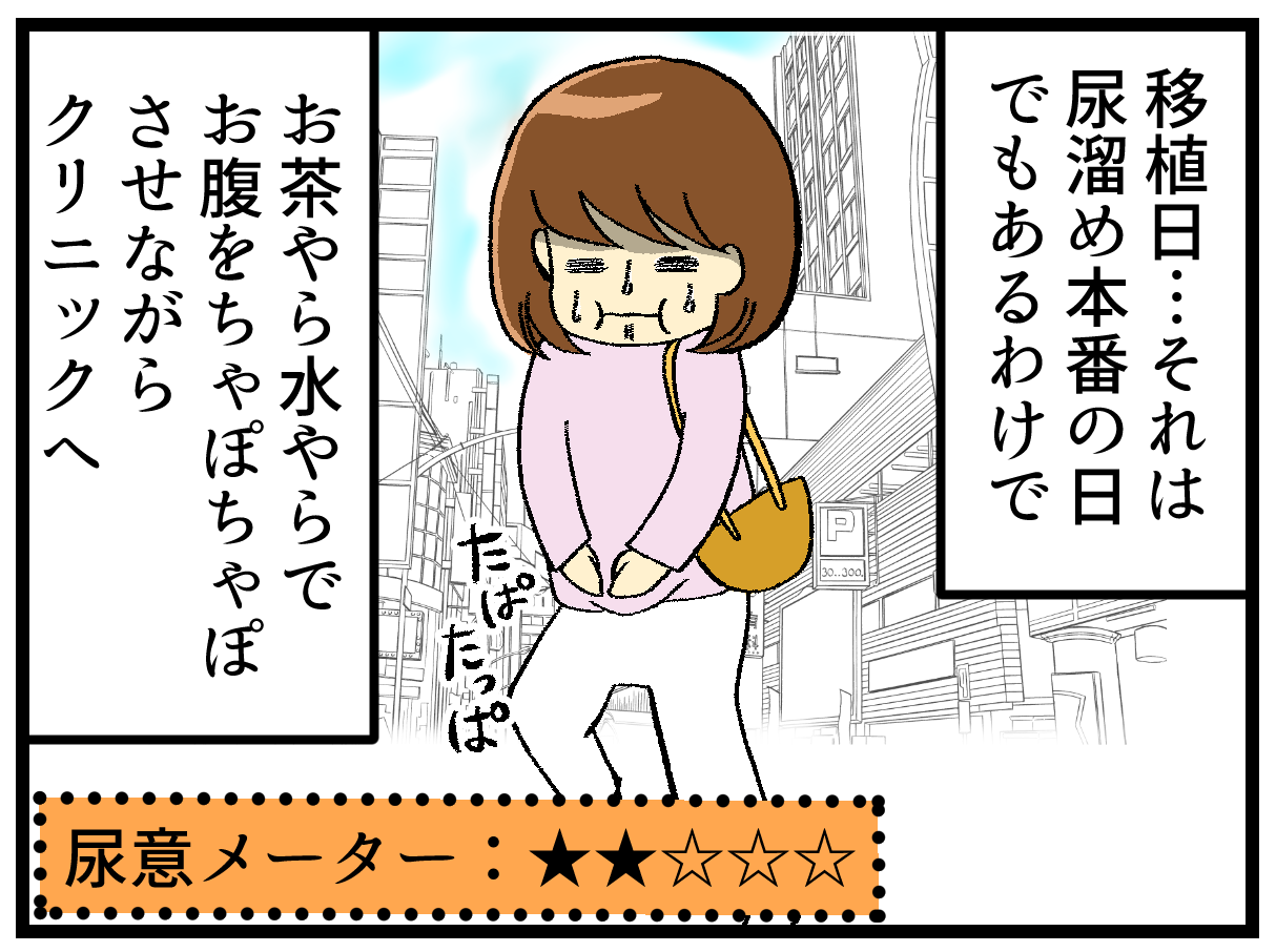 移植する日に待合室で膀胱パンパンになり座って待ってるのも辛すぎる感じでおしっこちびるんじゃないかとヒヤヒヤしました(笑)