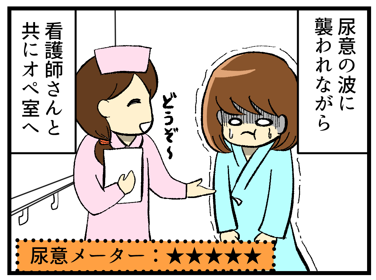 そうそう!オペ室に入った時点でもうパンパンなのに、押すんかいー!!ってΣ(゚Д゚)びっくりですよね!よくぞ漏らさなかった・・・自分・・・と褒めてあげたい。
