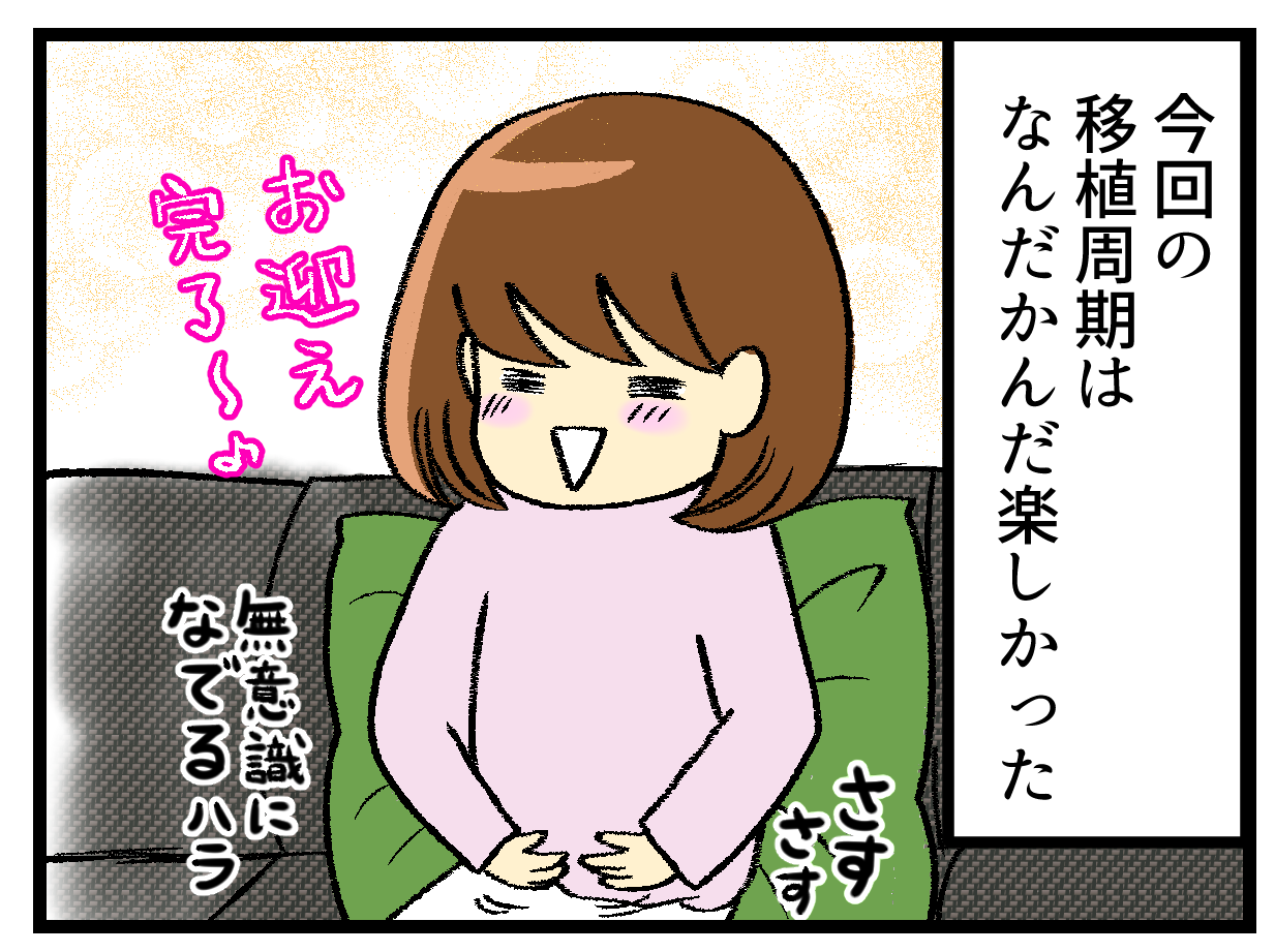 移植終わったぜ!達成感と、タマゴが下腹の中に確実にいるよ!と思えるから。