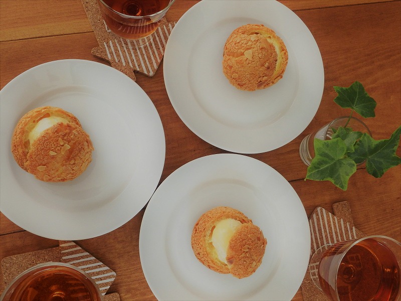 表面のクッキーはサクサクで、中のカスタード(生クリームブレンド)は甘すぎずちょうどいい感じ。