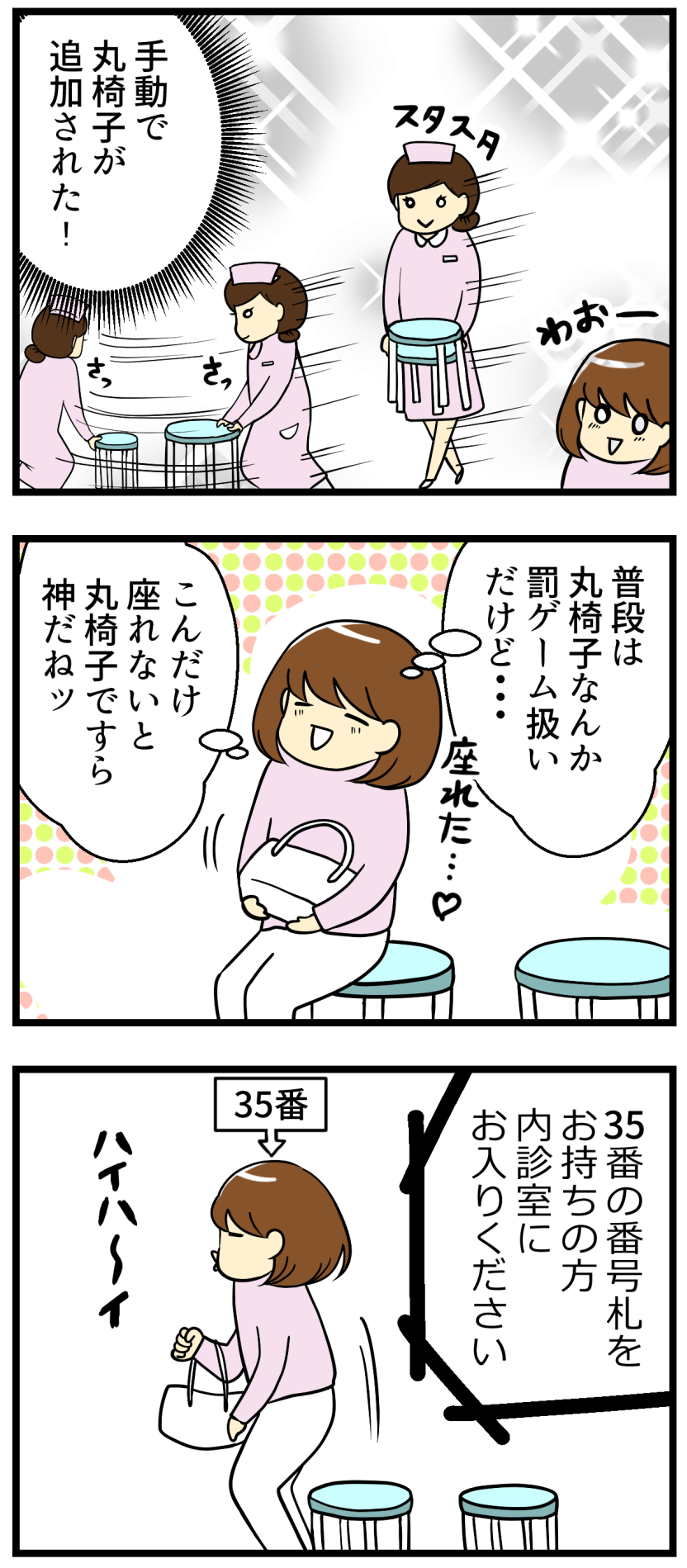激混みの中、「座れないよ~早くどこか空かないものか・・・ッ!」とギラギラしているところに手動で丸椅子が追加設置されるとすっごく嬉しい!!