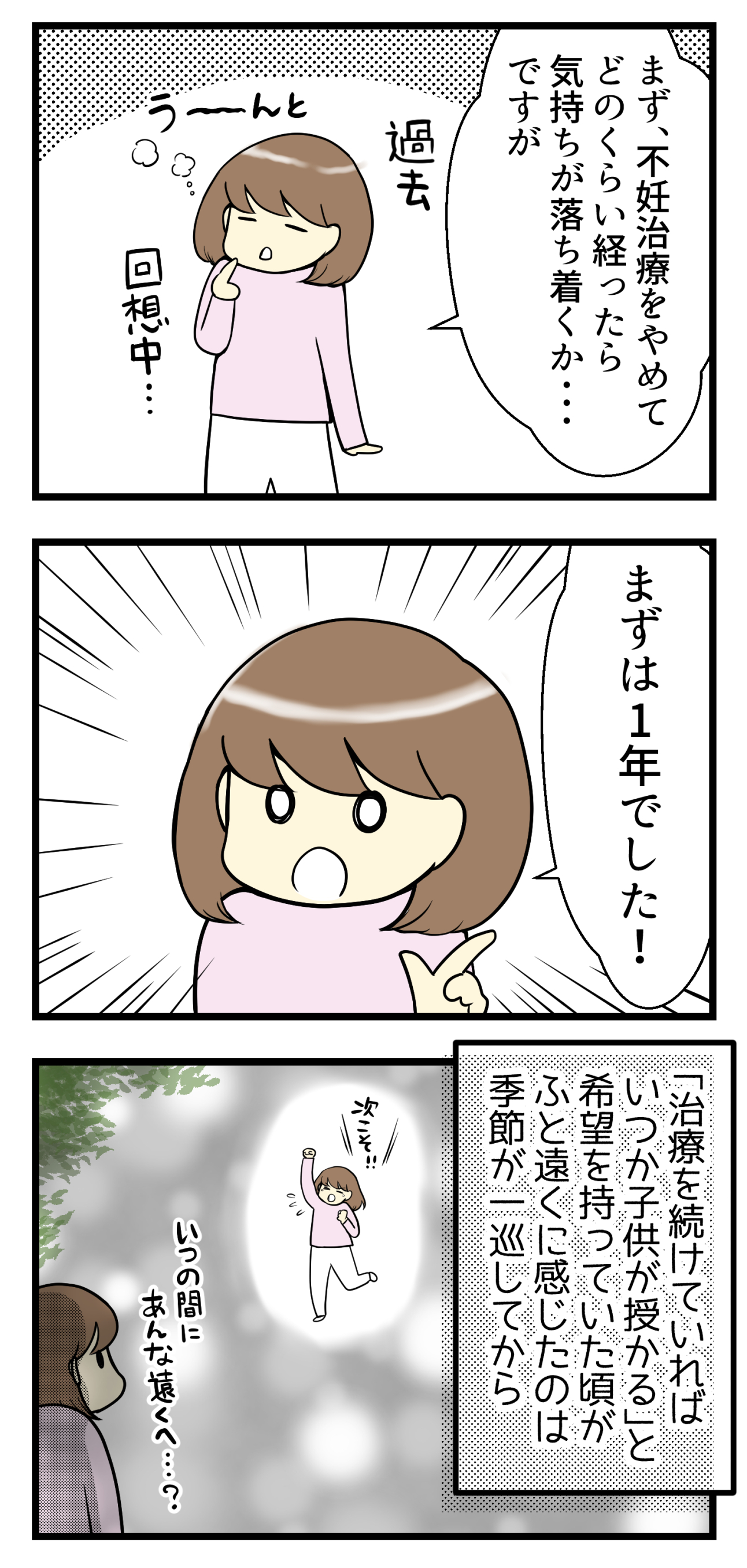 小さなこどもを見ては「どうしてうちにはいないのか…よそには二人も三人もいるのに…」とへこみます。そして「まだ!?」と顔を見る人毎に言われて、腹立たしい気持ちにさえなります。更に「今は良いけど、いずれ子供がいないとさみしくなるよ。」とまで言われ…
