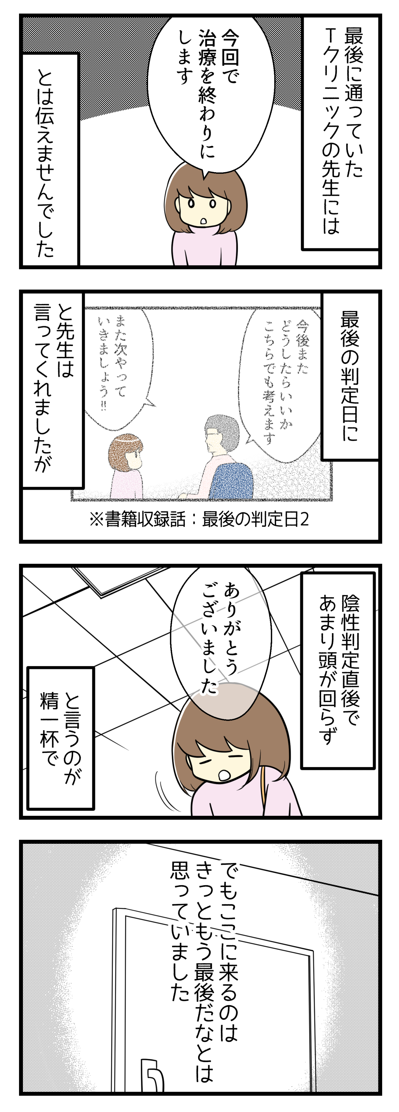 こんな感じで不妊治療を辞める前~後のことあたりを描きましたが、質問のお答えになっているでしょうか・・・(ドキドキ)