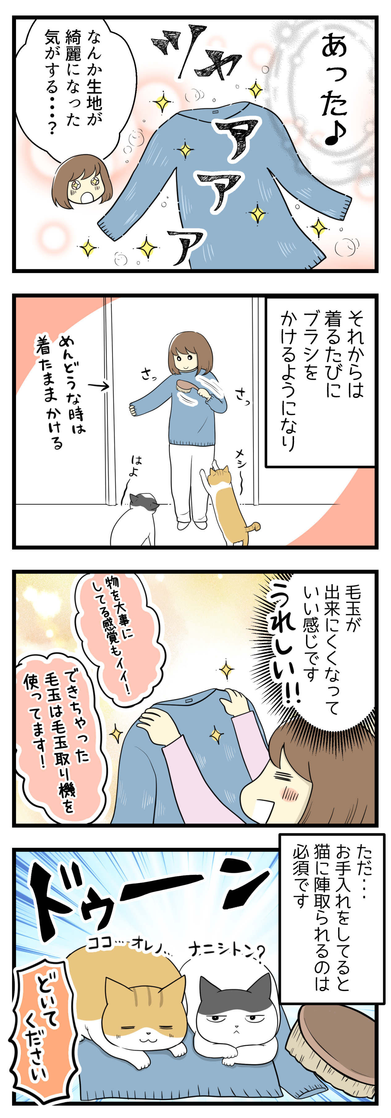 ちなみに何回もブラッシングしないと毛玉は取れないですか?