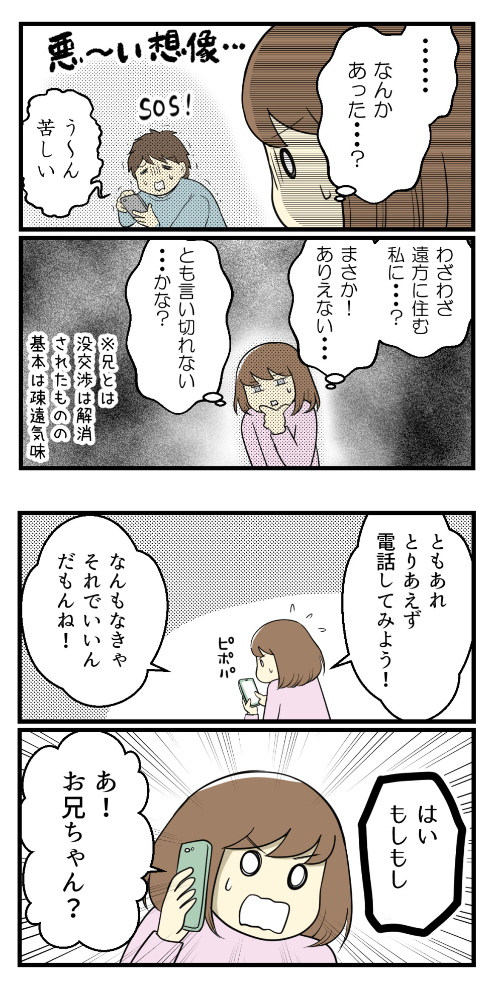 兄家族は近県の実家に両親と住んでいるものの、よほどじゃないと兄と直接連絡をとることはありません。