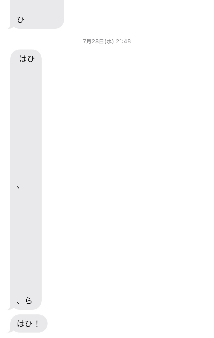 だから何度も「はひ!」とか「、、」とか送られてきてめっちゃ不安になりましたよ・・・