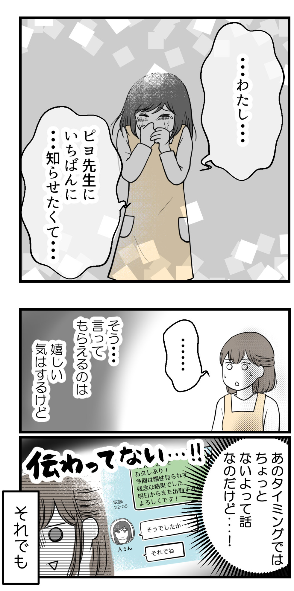 私はAさんに共感できません。陰性報告の直後に妊娠報告はありえないと思います。