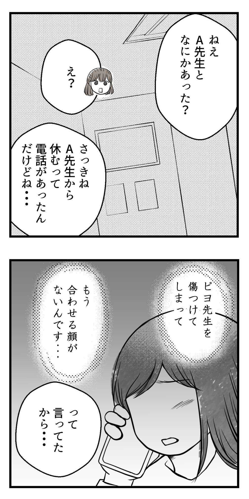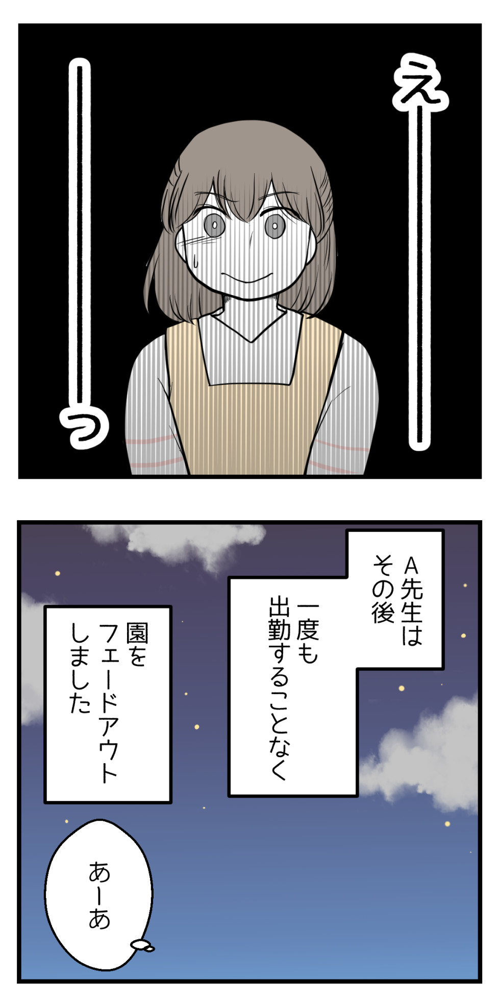主人公さんは勿論だけど、A先生も妊活頑張ったんだもんね。二人目無事に産んで、新しい職場でもご家庭でも、幸せになっていてほしいです。
