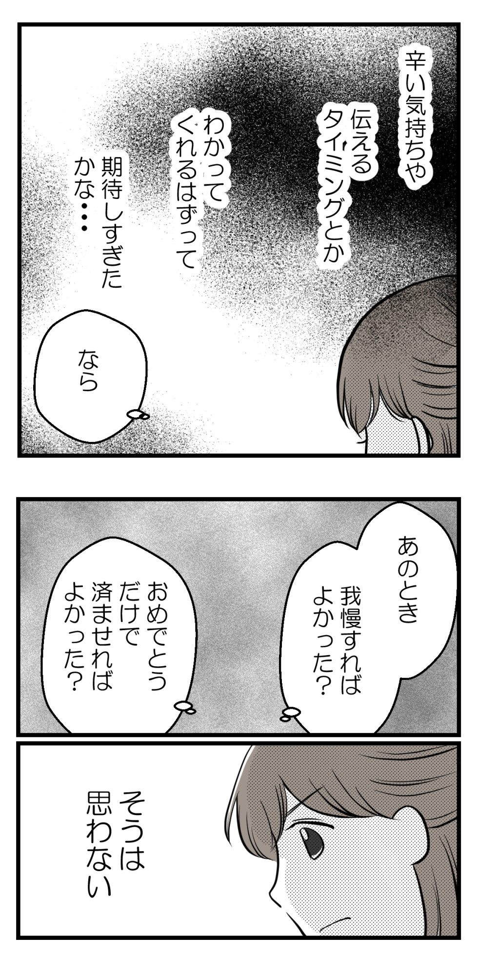 その辺りからAさんは主人公さんより先にって心のどこかで思っていたように思います…妊娠は競争じゃないけど、焦る気持ちがあるのは確かだと思うから。