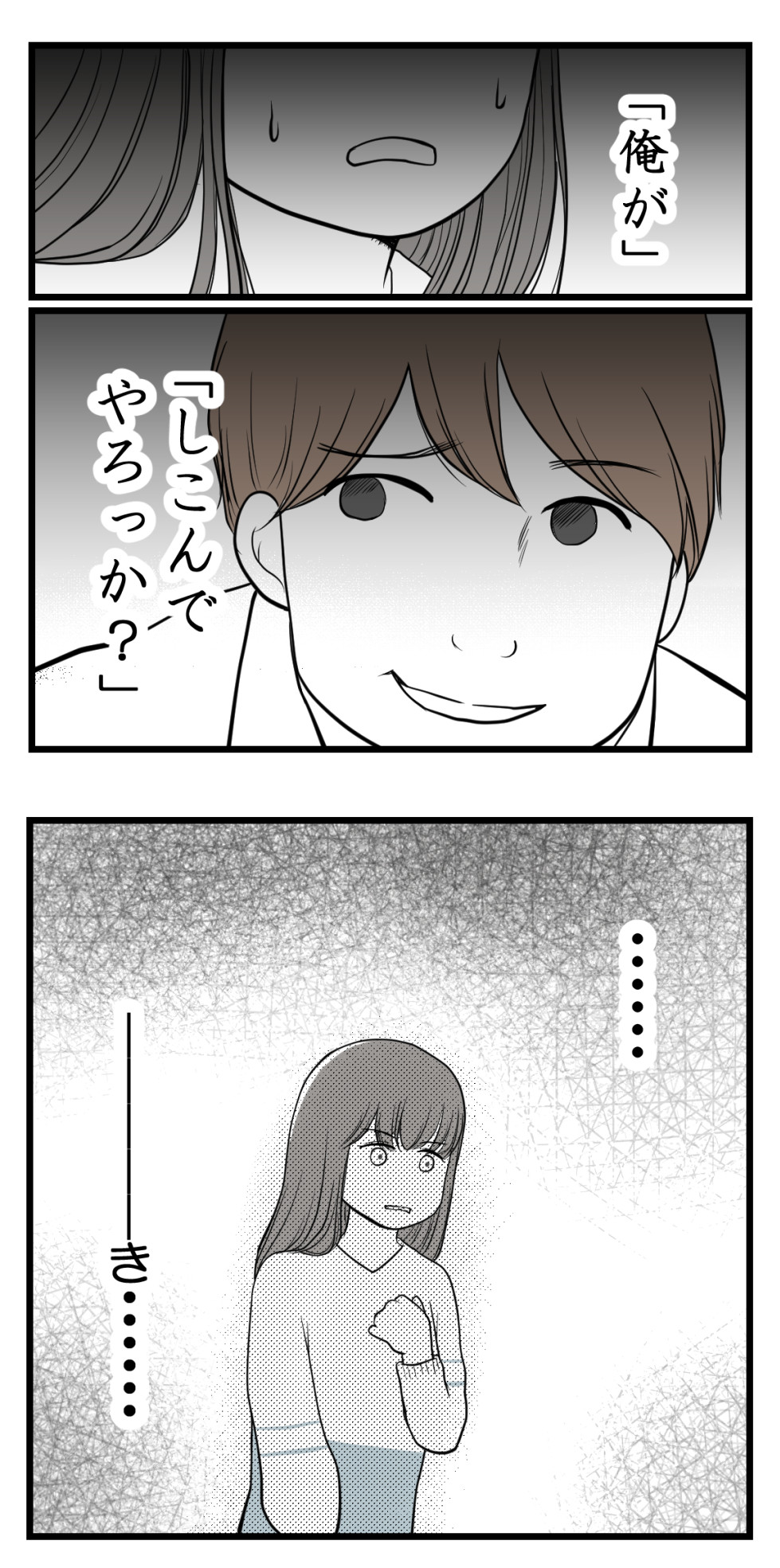 2022年06月08日 セクハラのきっかけは不妊治療でした5【読者さん妊活体験談52】 訪問いただきありがとうございます!海原(うみはら)こうめと申します。 このブログは5年間の不妊治療を終えた夫婦のその後、読者さんの妊活体験談などを漫画にしています。 このブログについて はじめから読む(第1話へ) 妊活漫画の目次(総合目次へ) 読者さんの妊活体験談52-5今日は前回記事↓ の続きになります。←前のお話はこちら次回に続きます!☆続きはこちら↓ ☆このお話をはじめから読む↓ 読者登録をするとLINEに更新通知が届きます手軽に最新話が読めますのでぜひ登録をお願いします!☆読者さんの妊活体験談をはじめから読む ☆他のお話はこちら↓ ○●○●○●○●○●○●○●○●○●◆妊活体験談募集中◆Twitterではブログに載せていない猫写真なども◆Instagramでは過去記事を再掲しています◆ランキング2か所参加中です。クリック頂けると更新の励みになります! ○●○●○●○●○●○●○●○●○● 「読者さんの妊活体験談一覧」カテゴリの最新記事 タグ :#妊活#不妊治療#体験談 < 前の記事次の記事 > コメント コメント一覧 (7) 1. いやー 2022年06月08日 08:11 怒っていいよ、流せないものは流せない セクハラだと騒ぎ立てられるのが嫌なら、セクハラだと思われるようなことを言わなければいい 自分のいつもの振る舞いを、全員が許容してくれてると思うなよ?でも、言い返したくても言い返せない人もいるんだろうな…… 0 海原こうめ がしました 2. みん 2022年06月08日 08:39 言い返せない人もきっといっぱいいるから、ちゃんと嫌だと伝えられて偉いです。 でもその反応さえも面白がってる可能性があるから本当は無反応が一番良いんだろうなぁ…と分かってても気持ち悪すぎて流せないですよね(*_*) 無事妊娠できた時も、それはそれでまたなんか言ってきそうで報告するのめちゃくちゃ嫌ですね… 0 海原こうめ がしました 3. マメ 2022年06月08日 08:44 朝読んでゾクっと出来るスリリングなブログ💙です。 こうめちゃん更新頑張ってね! 0 海原こうめ がしました 4. こんた 2022年06月08日 09:33 いくつくらいの人なんだろう。 絵だと若めに見えるけど。 50.60代のおじさんならこういうひといそうだけど、30代とかだったらもう救いようがない。 気があるのかなと最初思ったけど、だとしたらアプローチの仕方が大間違い過ぎるし。 謎。 この人に不妊治療の話しはすべきではなかったですね。 0 海原こうめ がしました 5. よく 2022年06月08日 10:07 >>4 不妊治療の話はするべきではない、って声ありますが、前の回を見る限りはしたくなくてもしなければどうしようもない状況も沢山ありますよね。 しないと仕事に支障が出てしまう場合なんていくらでもある。 0 海原こうめ がしました 6. 花子 2022年06月08日 10:10 >>4 話をするべきではなかったということは、話した側の判断にも問題があるとかそういう意味合いでしょうか…? お話を読んでればわかると思いますが、この上司から指示を貰うことが多いから言うことは避けて通れないという描写がありましたが…。 0 海原こうめ がしました 7. 愛理 2022年06月08日 11:08 >>4 直属の上司だったり、勤怠管理もしている人がこういう事言う人なのかもしれないですよ。 私の時もそうでしたけど、親身に聞いてくれる方と思って話したのに酷い返しをされました。 「我が社でも諦めた人いるからねー」って言ってたけど 「諦めさせた!」の間違いですよ、パワハラです。 0 海原こうめ がしました コメントフォーム 名前 コメント 記事の評価 リセット リセット 顔 星 情報を記憶 コメントを投稿する