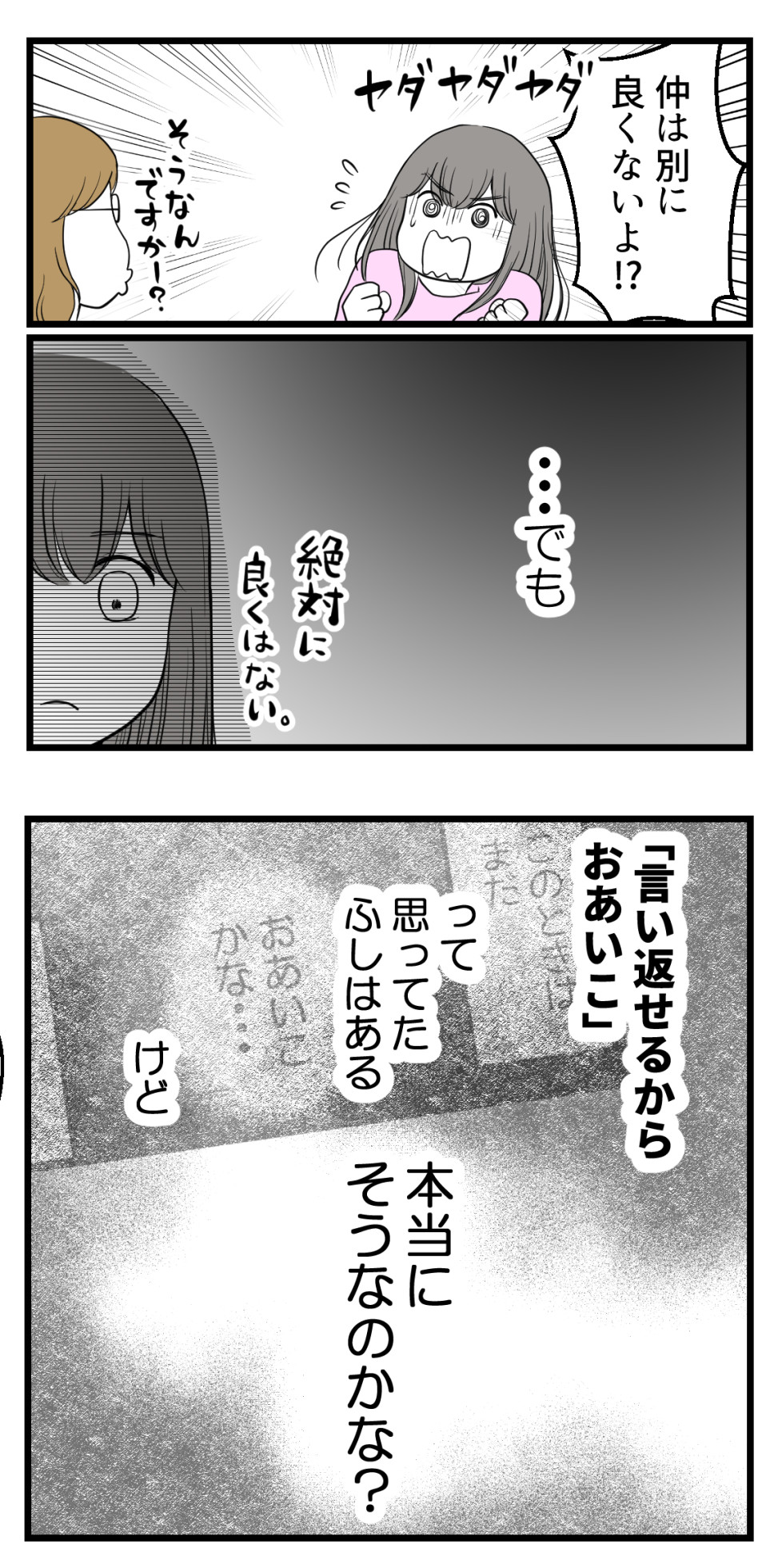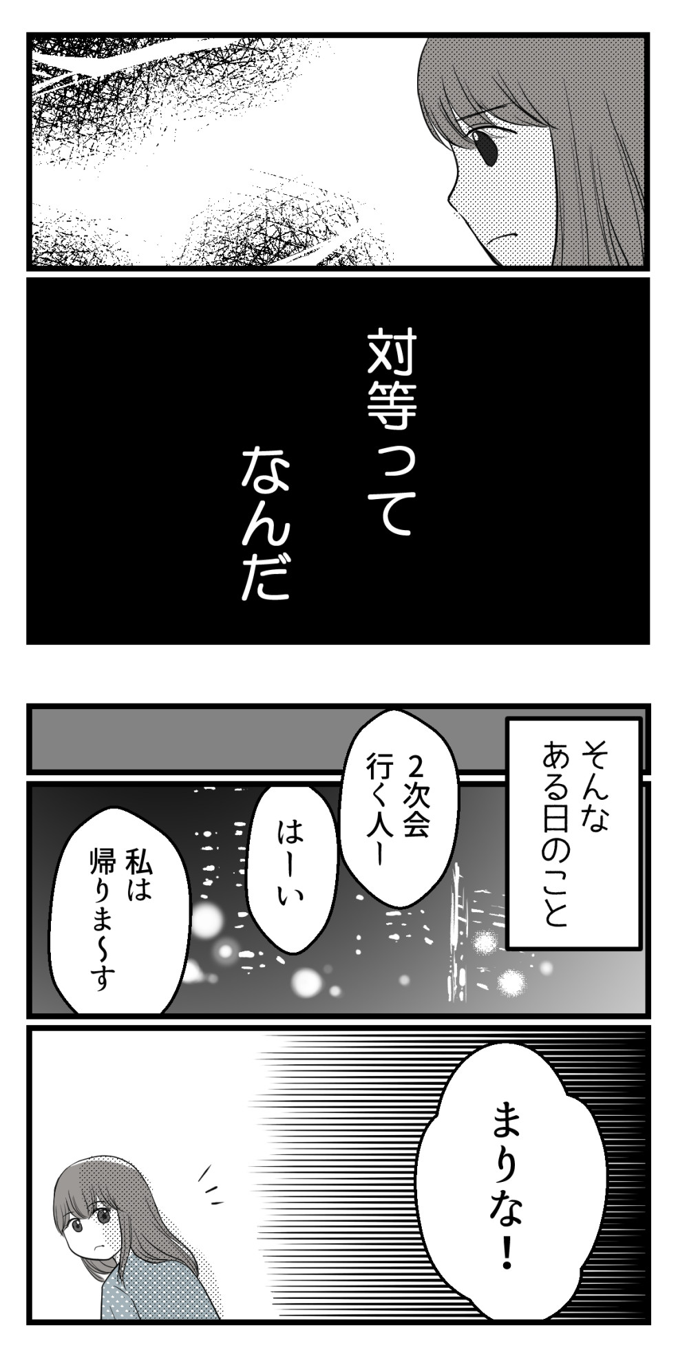 2022年06月12日 セクハラのきっかけは不妊治療でした8【読者さん妊活体験談52】 訪問いただきありがとうございます!海原(うみはら)こうめと申します。 このブログは5年間の不妊治療を終えた夫婦のその後、読者さんの妊活体験談などを漫画にしています。 このブログについて はじめから読む(第1話へ) 妊活漫画の目次(総合目次へ) 読者さんの妊活体験談52-8今日は前回記事↓ の続きになります。←前のお話はこちら次回に続きます!☆続きはこちら↓ ☆このお話をはじめから読む↓ 読者登録をするとLINEに更新通知が届きます手軽に最新話が読めますのでぜひ登録をお願いします!☆読者さんの妊活体験談をはじめから読む ☆他のお話はこちら↓ ○●○●○●○●○●○●○●○●○●◆妊活体験談募集中◆Twitterではブログに載せていない猫写真なども◆Instagramでは過去記事を再掲しています◆ランキング2か所参加中です。クリック頂けると更新の励みになります! ○●○●○●○●○●○●○●○●○● 「読者さんの妊活体験談一覧」カテゴリの最新記事 タグ :#妊活#不妊治療#体験談 < 前の記事次の記事 > コメント コメント一覧 (10) 1. えりぃ 2022年06月12日 07:50 やっぱり「セクハラじゃない」「コミュニケーションの一環」か… そう言えばみんな何も言えなくなるし、都合のいい言葉だよね。でも、いくら本人が違うって言っても受け取り側が不快に感じるならつまりそういうことじゃない?受け取り側の気持ち、丸無視ってことだよね 0 海原こうめ がしました 2. ばたこ 2022年06月12日 07:57 相手が嫌だなとかやめて欲しいって思うなら、持論を捨てるのも思いやりだよ つまり、思いやりがないんだよねこの男は。 もし、かなり年上の年配の女性から性的なこと言われればギャーギャー騒ぐでしょ、どうせ。それと変わらないよ 0 海原こうめ がしました 3. 結局 2022年06月12日 08:19 この男のワガママってこと?これが俺のやり方ー、持論ーって社会人になってしかも部下まで抱えてるくせに人の気持ちも考えられないって人としてアウトじゃん。人の痛みをお前が決めんなよ 0 海原こうめ がしました 4. てか 2022年06月12日 09:03 キモイ事言われて緊張ほぐれたことなんて1度もないや。 0 海原こうめ がしました 10. これ 2022年06月12日 17:17 >>4 ほんと的確だなと思いました。 ただただ『きもい』しか残らないですよね。 0 海原こうめ がしました 5. まる 2022年06月12日 09:08 性的な発言や態度がセクハラかどうか決まるのは受ける側の主観次第じゃないの?言ってる本人の考えなんて知ったこっちゃねえよ! 0 海原こうめ がしました 6. お前さぁ 2022年06月12日 09:38 もし自分が、「緊張ほぐすために」と称してアレの大きさのこととか逐一言われても不快な思いせずにいられるんか? 0 海原こうめ がしました 7. 名無し 2022年06月12日 10:00 周りから見たら冗談も言える仲良しなんだなぁってもうなってるんだねぇ… 実際は迷惑してるってのは当事者じゃなきゃわからないよなぁ…直接言うのは出来ないにしろ、仲良い同僚にサラッと遠回しに「そういうことまた言ってー、傷ついてましたよ!○○さん(主人公)」って言ってもらうのも一つの手よね…。 言ってる本人はいつも通りな可能性はある 0 海原こうめ がしました 8. ねこ 2022年06月12日 10:51 セクハラにしても不妊治療にしても受け取る側がどう思うかが重要ですね。 いじめだってそう。 そんなつもりなくても相手が不快に思うならそれは立派なセクハラだよ。 0 海原こうめ がしました 9. すーちゃん 2022年06月12日 13:29 うぉえっぷ ≡3 なんか吐き気してきたわこの男! 無自覚が一番恐ろしい。 しかも、自分は良いことをしていると勝手な自惚れ。 会社にセクハラ・パワハラ相談窓口無いのかな。 今は大抵どこにでもあるけど。 まぁ、あっても役に立つかは別問題なんだけど💧 0 海原こうめ がしました コメントフォーム 名前 コメント 記事の評価 リセット リセット 顔 星 情報を記憶 コメントを投稿する
