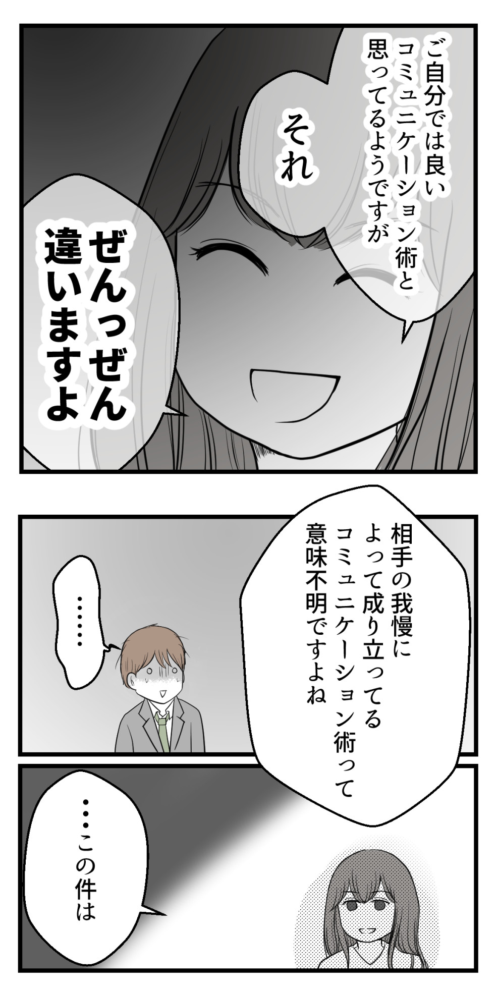 2022年06月25日 セクハラのきっかけは不妊治療でした16【読者さん妊活体験談52】 訪問いただきありがとうございます!海原(うみはら)こうめと申します。 このブログは5年間の不妊治療を終えた夫婦のその後、読者さんの妊活体験談などを漫画にしています。 このブログについて はじめから読む(第1話へ) 妊活漫画の目次(総合目次へ) 読者さんの妊活体験談52-16今日は前回記事↓ の続きになります。←前のお話はこちら 次回で最終話です!☆続きはこちら↓ ☆このお話をはじめから読む↓ 読者登録をするとLINEに更新通知が届きます手軽に最新話が読めますのでぜひ登録をお願いします!☆読者さんの妊活体験談をはじめから読む ☆他のお話はこちら↓ ○●○●○●○●○●○●○●○●○●◆妊活体験談募集中◆Twitterではブログに載せていない猫写真なども◆Instagramでは過去記事を再掲しています◆ランキング2か所参加中です。クリック頂けると更新の励みになります! ○●○●○●○●○●○●○●○●○● 「読者さんの妊活体験談一覧」カテゴリの最新記事 タグ :#妊活#不妊治療#体験談 < 前の記事次の記事 > コメント コメント一覧 (9) 1. Ayu 2022年06月25日 07:23 えらーーーい!!! よく言ったぁ!!! 0 海原こうめ がしました 2. そうだよね 2022年06月25日 08:22 冗談かどうかも、大袈裟かどうかも言った奴が決めることじゃない。言われた側がどう感じたかが全て。しかし、田中弱いなーおい笑 まりなさんがここまで怒るなんて思わなかったんだね。いい大人のくせに、自分が人を不快にさせたことを無かったことにしようとしてばっかりいるからだよ。コミュニケーション上手い俺⭐️がどんどん崩れていくね。無様〜。この仕返しでまりなさんがパワハラとかされないことを願う… 0 海原こうめ がしました 3. やよい 2022年06月25日 08:36 こんなダサ男相手に怯える必要なんてなかったことに気がつけてよかった もっと早くに対処しておけば〜とかよく言われることだけど、こうやって見てる側が言うのは簡単だけど、実際自分が被害にあったら早めに対処できる人なんてそんなにいない。相談だってすぐできる人らどれくらいいる?なぜか被害者側が辞めなきゃいけなくなるケースも今だに多い。それはまだまだセクハラが軽視されてる証拠なんじゃないかな。 自分も人にセクハラと取られかねない発言をしてないか、セクハラで悩んでる人のことを「自分はそう思わない」「もっとこうすればいいんだよ」とか言って蔑ろにしていないか、振り返ることって大切だと思った 0 海原こうめ がしました 4. かっこいい! 2022年06月25日 08:38 壁ばん!!!!! でも本当『不快』って言葉がいいんだろうな! 0 海原こうめ がしました 5. 志保 2022年06月25日 08:56 よく言った。今まで不快な思いさせられたんだし、これくらい言ってもバチは当たらないでしょ でも、田中は心の底から相手を不愉快にさせて悪かったと反省できるような男にはどうも見えない。今後謝罪をされても、その裏には「とりあえず謝罪さえすれば訴えられたりすることもないだろう」「もしチクられたら俺の立場がなくなる」っていう魂胆がありそう。田中本人に「申し訳ない」って気持ちが芽生えない限りは、また似たようなことをやらかすんじゃないかと。 ※でも、だからってまりなさんの対応が足りないとかそういうわけじゃないです。私が田中の人柄を全く信用出来ないというだけ😅 0 海原こうめ がしました 6. 名前 2022年06月25日 09:39 朝からめちゃくちゃスッキリさせていただきましたww こういう上司は要らない!! たとえ仕事が出来ても、部署の女性社員のやる気を削ぐ存在 あ~左遷されないかなww 0 海原こうめ がしました 7. ななし 2022年06月25日 10:10 こういう輩はむしろ相手が喜んでると勘違いしてる。アホだね。上司だから気を遣ってるけどマジでキモいんだよ! あわよくばヤれると思ってるのだろうけどムリですよ。 0 海原こうめ がしました 8. 反撃カッコイイ‼︎ 2022年06月25日 10:44 本当によく言った〜っ👏👏👏👏👏 これがセクハラじゃないなら何なんの⁉︎ セクハラの定義言ってみろ!って話\٩(๑`^´๑)۶// 0 海原こうめ がしました 9. セクハラじゃねぇから… 2022年06月25日 12:09 ハラスメント加害者の定番のセリフ そんなつもりはなかった そんなことで騒ぐなんておかしい みんなやってる 自分は悪くない 言われた相手の気持ちなど 考えにも及ばない だから自覚なき者は繰り返す 何度でも 0 海原こうめ がしました コメントフォーム 名前 コメント 記事の評価 リセット リセット 顔 星 情報を記憶 コメントを投稿する