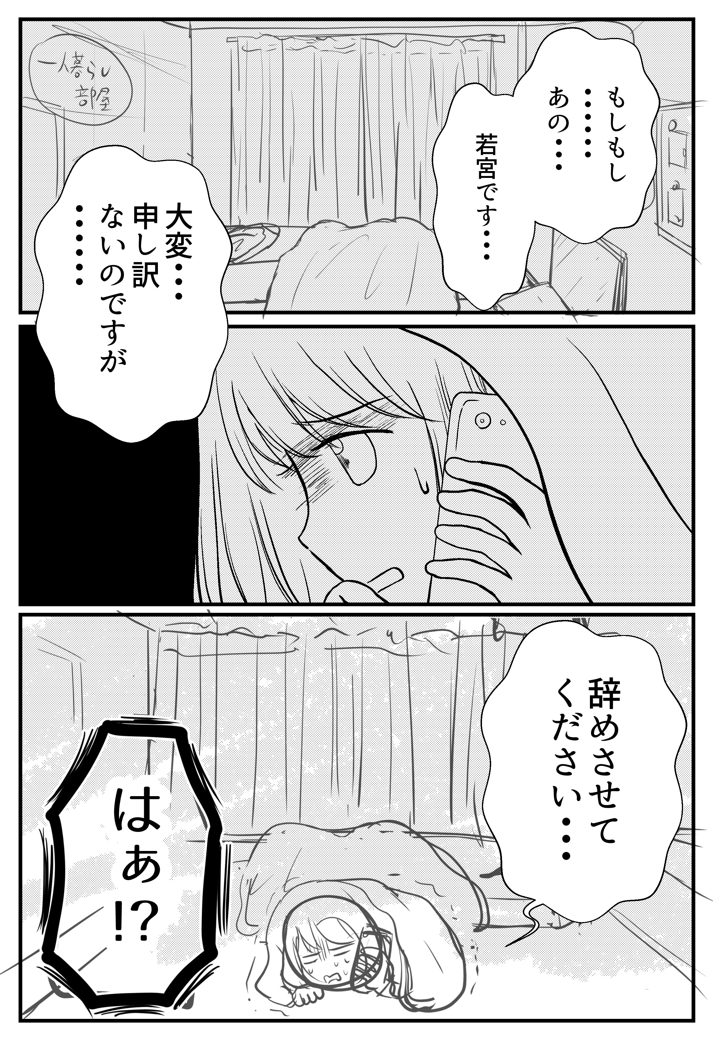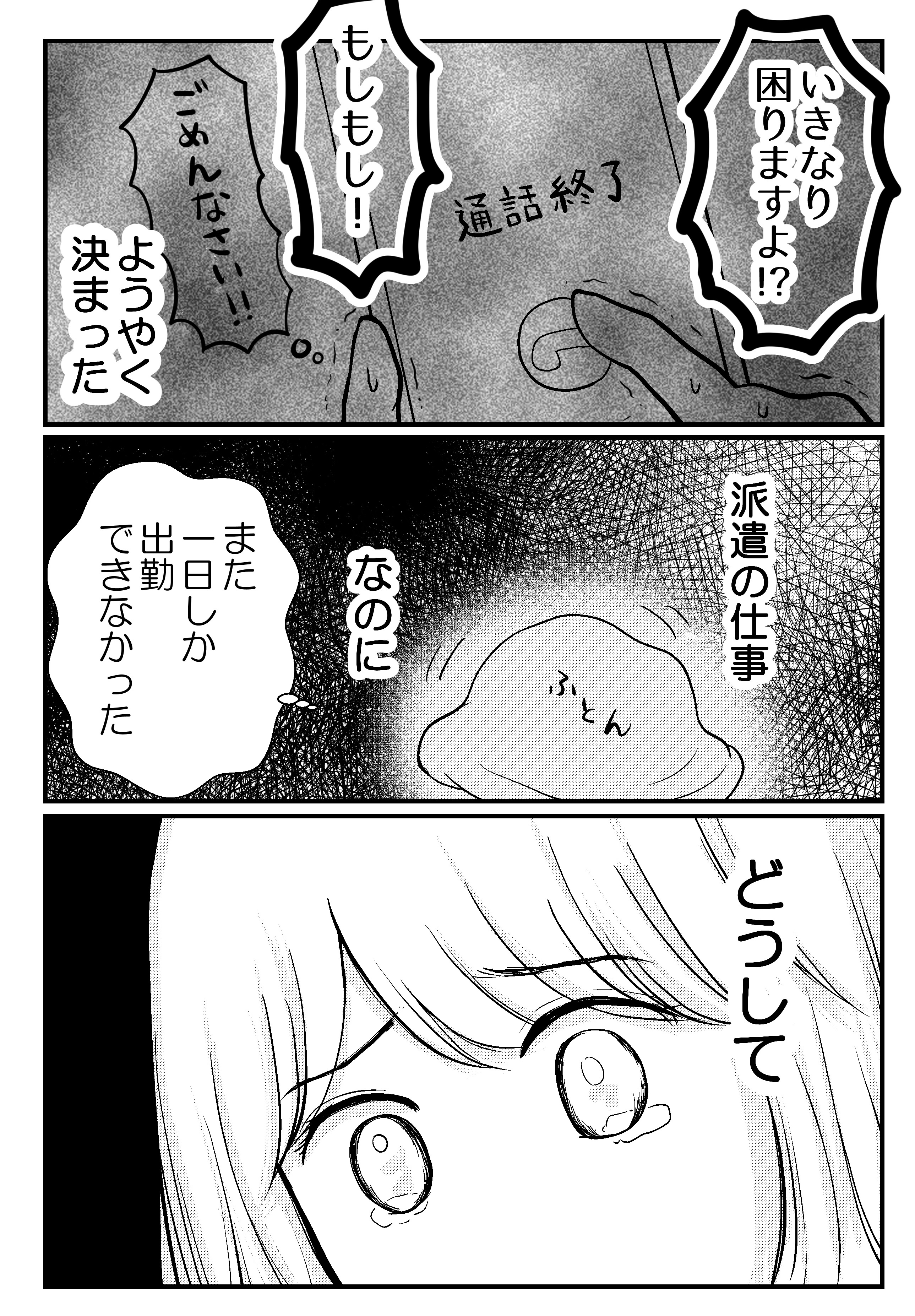 2022年09月30日 仕事の続かない私が選挙カーのウグイス嬢をやったら‐1【創作漫画】 訪問いただきありがとうございます!海原(うみはら)こうめと申します。 このブログは不妊治療を終えた夫婦のその後、日常やら猫との生活などを漫画にしています。※リアルタイムの話ではありません。 このブログについて はじめから読む(第1話へ) 妊活漫画の目次(総合目次へ) 卒業制作の32ページ漫画を載せます続き物の途中でスミマセン!りなちゃんの話が諸事情によりなかなか描き終わらず、漫画のストックが減ってきて不安・・・!そんなわけで今年の4月から半年間参加していた漫画の講座(コルクラボマンガ専科)の卒業課題として描いた創作漫画を合間に入れさせてください~!!↓コルクラボ参加のときの話 32ページあるので、全4回で合間を見て更新します。創作漫画とはいえど私の実体験ベースのお話だったりします・・・拙いところもありますが読んでいただけたら!嬉しいです!! 次回に続きます。☆続きはこちら↓ 読者登録をするとLINEに更新通知が届きます手軽に最新話が読めますのでぜひ登録をお願いします!☆読者さんの妊活体験談をはじめから読む ☆他のお話はこちら↓ ○●○●○●○●○●○●○●○●○●◆妊活体験談募集中◆Twitterではブログに載せていない猫写真なども◆Instagramでは過去記事を再掲しています◆ランキング2か所参加中です。クリック頂けると更新の励みになります! ○●○●○●○●○●○●○●○●○● 「仕事の続かない私が選挙カーのウグイス嬢をやったら」カテゴリの最新記事 タグ :#創作漫画#対人恐怖症 < 前の記事次の記事 > コメント コメント一覧 (6) 1. 派遣会社にいました 2022年09月30日 09:49 派遣て雇用形態自体、不当な搾取だと思います… 派遣先は使い捨てに丁度良いと考えているし(直接働く現場は違うかもですが)… 派遣元だって… 私がいた派遣会社(某有名企業)の上司は派遣登録している方達を、「登録スタッフ?すぐ辞めんのよね〜あんな派遣しかできないような奴ら。使い捨て。こっちの給料のために黙って働けってんの〜(笑)」と、登録者の捉え方を教えてくれました。 酷いと思ってその言葉、今も忘れません。 いい人もいると思いますが、そうやって見下す会社や人が多いのも事実です。 慣れない職場で合うか合わないかも分からないですし、そもそも職場自体に問題があるところも多いです。これ読んで切なくなりました。 0 海原こうめ がしました 2. 怖い 2022年09月30日 09:50 仕事が続かないのも怖いけど 運転中は運転に集中して欲しい 精神が不安定な時は運転してはあきまへん 0 海原こうめ がしました 3. ゆずりは 2022年09月30日 11:28 凄く共感します。私も全く同じで派遣やバイトも全く続かず嫌われてクビな人生でした。対人恐怖症と言うか、あまり話さなくていい職場を見つけて今頑張ってます。60代前後の年配女性がメインで働く調理場の洗い場とゴミ捨て作業なのですが年下故に体力あるのと対等なコミニュケーション能力を求められないので基本喋らないけど仲間はずれにされずとどまれてます 0 海原こうめ がしました 4. しろぽんの独り言 2022年09月30日 16:01 いつも拝見してます 0 海原こうめ がしました 6. 里香 2022年10月03日 12:32 色んな派遣会社で働いてきたが あんな机叩いて恫喝する会社 出逢ったことないよ・・・ 本当だとしたらブラック過ぎる!! 大人なら落ち着いて話し合えよ💧 パワハラ派遣会社の派遣先なんて ろくな会社じゃないだろうし。 0 海原こうめ がしました 7. ななし 2022年10月05日 08:20 派遣会社に厳しいコメントもあるけど、実際のところ派遣会社の営業さんが頑張ってとってきた取引先 こんな辞め方では信用問題に関わるし評判も落ちて他社からも使ってもらえなくなる 色んな人にめちゃくちゃ迷惑かかるんだから自分で問題点や向き不向きを洗い出してから派遣登録した方がいいよね 0 海原こうめ がしました コメントフォーム 名前 コメント 記事の評価 リセット リセット 顔 星 情報を記憶 コメントを投稿する