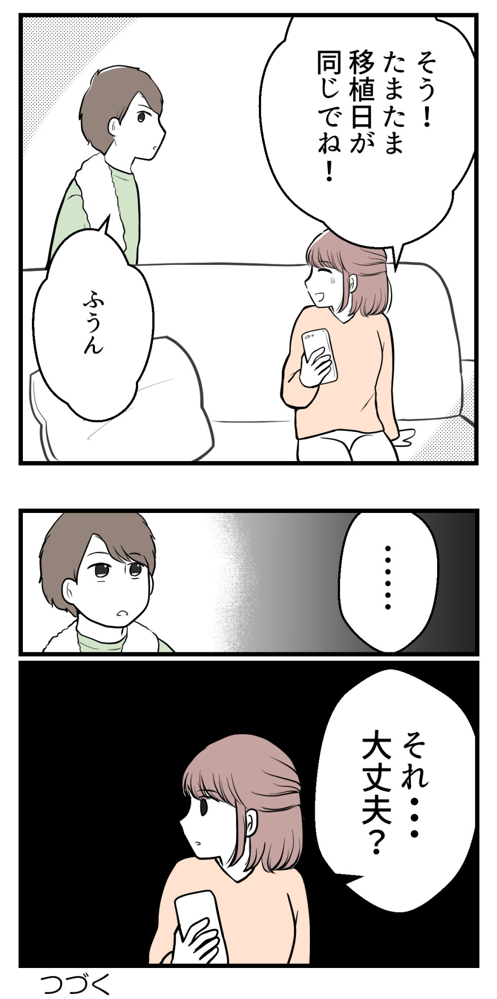 体外受精セミナーを受けて不安に襲われていたとき、同じセミナーを受けた「吉田さん」をSNSで見つけてメッセージのやりとりをするようになった。そして迎えた移植日、吉田さんと会うことに!