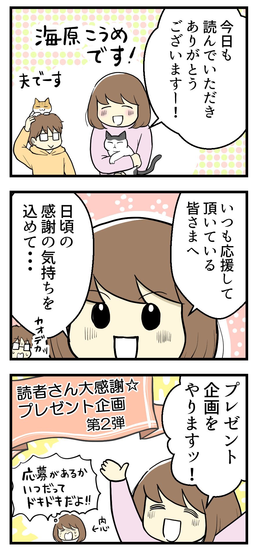 ・プレゼントは「海原こうめ」のペンネーム記載のみで郵送予定ですが、それでもイイヨ!という方