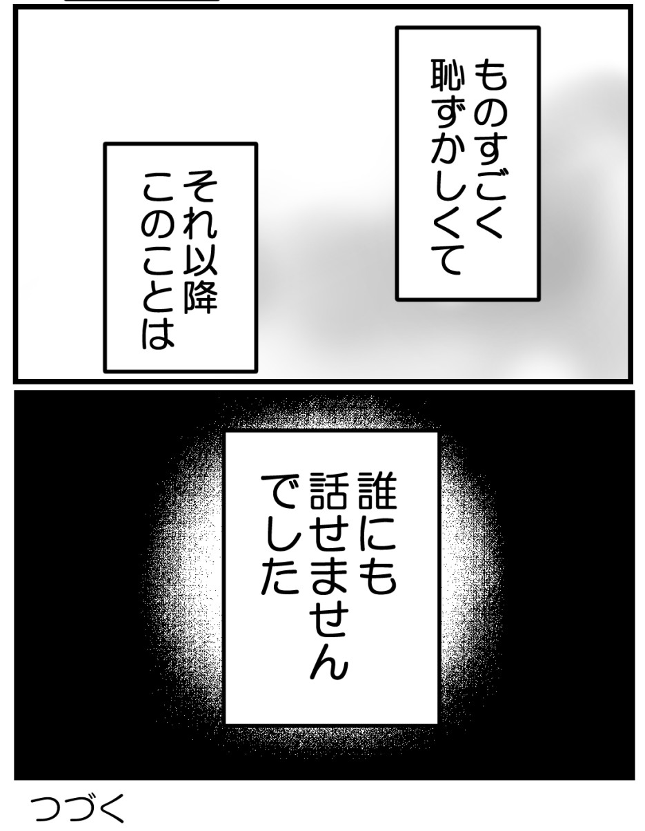 2024年02月17日 整骨院にて、これはセクハラでしょうか?-6- 訪問いただきありがとうございます!海原(うみはら)こうめと申します。 このブログは5年間の不妊治療を終えた夫婦のその後、読者さんの妊活体験談などを漫画にしています。 このブログについて はじめから読む(第1話へ) 妊活漫画の目次(総合目次へ) 新人営業時代のお話リメイク版です6今日は前回記事↓ の続きになります。 次回で最終話です!☆続きはこちら↓ ▽ライブドアアプリで更新通知を受け取る▽Xでも更新のお知らせをしています!新刊発売中!▽Amazonでのご購入はこちらから!☆他のお話はこちら↓・レスの友人に振り回された話 ・欲しいのは男の子ー子どもの性別にこだわる夫ー ○●○●○●○●○●○●○●○●○●◆妊活体験談募集中◆Instagramでは過去記事を再掲しています 「整骨院セクハラ」カテゴリの最新記事 タグ :#整骨院#セクハラ < 前の記事次の記事 > コメント コメント一覧 (6) 1. 😰➰ 2024年02月17日 11:15 2人で行ったから そのセクハラおじさんは普通の対応をしたんじゃないかと思います。 普通を装うしか出来なかったのでしょう。 だから思い違いなどではありません。 0 海原こうめ がしました 2. 名無し 2024年02月17日 12:40 本当にこの付き添いに来た女は営業として仕事出来てるんでしょうか? 人間の心理をまっったく理解できていないので仕事ができたとしても私生活で嫌われてそうですね 0 海原こうめ がしました 3. 長文 2024年02月17日 12:41 こうめさん、大丈夫ですか? リメイクして何度も投稿するあたり深い心の傷になっているのかと思いました。 私はこうめさんより後の世代ですが、それでも昔は今と違いセクハラが当たり前にあってセクハラがセクハラとされていなく男性からちょっかい出されるうちが花と認識されていた時代でした。 会社でも飲みの席でもどこでも日常茶飯事にありましたよね。 当時ならこれくらい別にセクハラでもなんでもないと言われたでしょう。 女性も慣れてしまって麻痺してたりそれを利用して若くして出世していった強者もいましたね。 私も経験ありますが私は慣れて麻痺してたタイプでしたね汗 適当に受け流してました。 しかし時が過ぎて、まだ結婚しないの?の一言でセクハラと言われればセクハラになる時代。 セクハラの定義が厳しくなった今、ネットでこの話を発信することでリスナーにセクハラだと賛同してもらうことで心のモヤモヤを消そうとしているのかなと思いました。 私は今となっては笑い話(ネタ)ですが、こうめさんにとっては何十年経っても引きずる経験だったんですね。 少しづつ忘れて行けるといいですね! 0 海原こうめ がしました 4. ひでぇな先輩 2024年02月17日 12:53 先のコメでもおっしゃってたけど 2人できたからでしょうよ 1人で新人が 飛び込み営業できた弱みに漬け込んだ犯行だよ 明らかに 初めてじゃない それに2度目に2人連れなら 警戒するっしょ 密室で 2人きり 年配の男がお客になりそうな立場を利用して 新人の若い女性にセクハラ それを 疑われないようにするのが 最低ラインを越えてやってる 確信犯だよ 本人が怯えてるのを 思い遣ってやらないと 辞めちゃうよ 0 海原こうめ がしました 5. 先輩の発言はセカンド〇〇〇ですよね 2024年02月17日 13:45 以前、児童相談所の所長さんに、性犯罪をする男性に特徴はありますか?と聞いたことがあります。 ないそうです。 どんなタイプの人も、この人はしないだろうという人でもしてる人はしているそうです。だから、少しでも不審な点があれば疑った方が安全だと思います。こうめさんの勘も間違ってないというか、絶対に否定しない方がいいと思います!! この整体師は世間体を気にするタイプだから運良く助かっただけだと思います。気にしないタイプだったらと思うとゾッとします。 0 海原こうめ がしました 6. 気のせいじゃないよ 2024年02月17日 20:17 女性を常に性的対象と見てる人は存在してて、その中でも自分より非力な女性に対してレイプまがいのことをする人はいるよ ティッシュのせたり全然笑えないよ 嫌だった、不愉快だった、怖かったっていうご自身の気持ち大事にしてください 0 海原こうめ がしました コメントフォーム 名前 コメント 記事の評価 リセット リセット 顔 星 情報を記憶 コメントを投稿する
