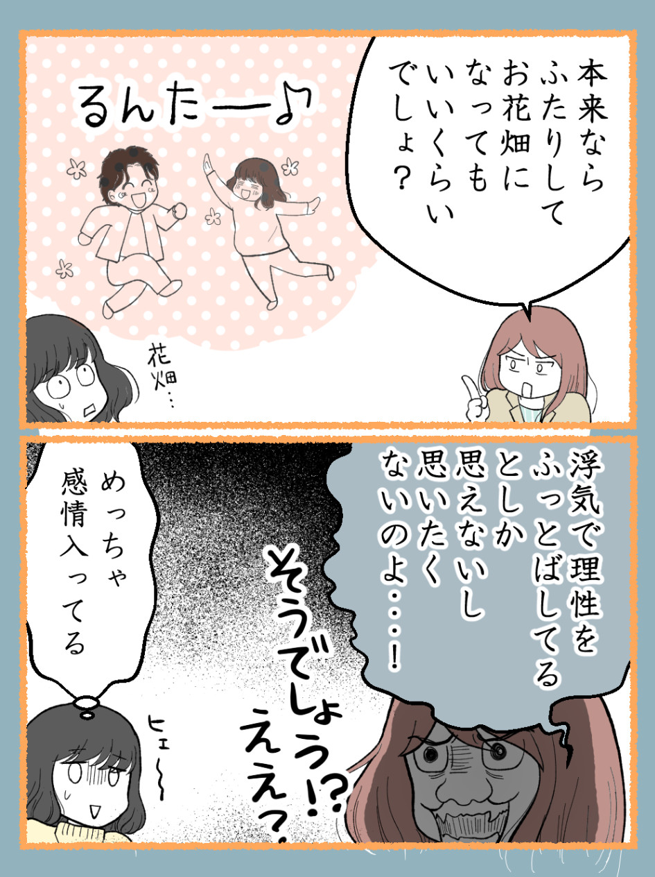 本当に浮気なら問題ないけど、よく話し合ってというところまでにしておいた方がベストだとは思う。