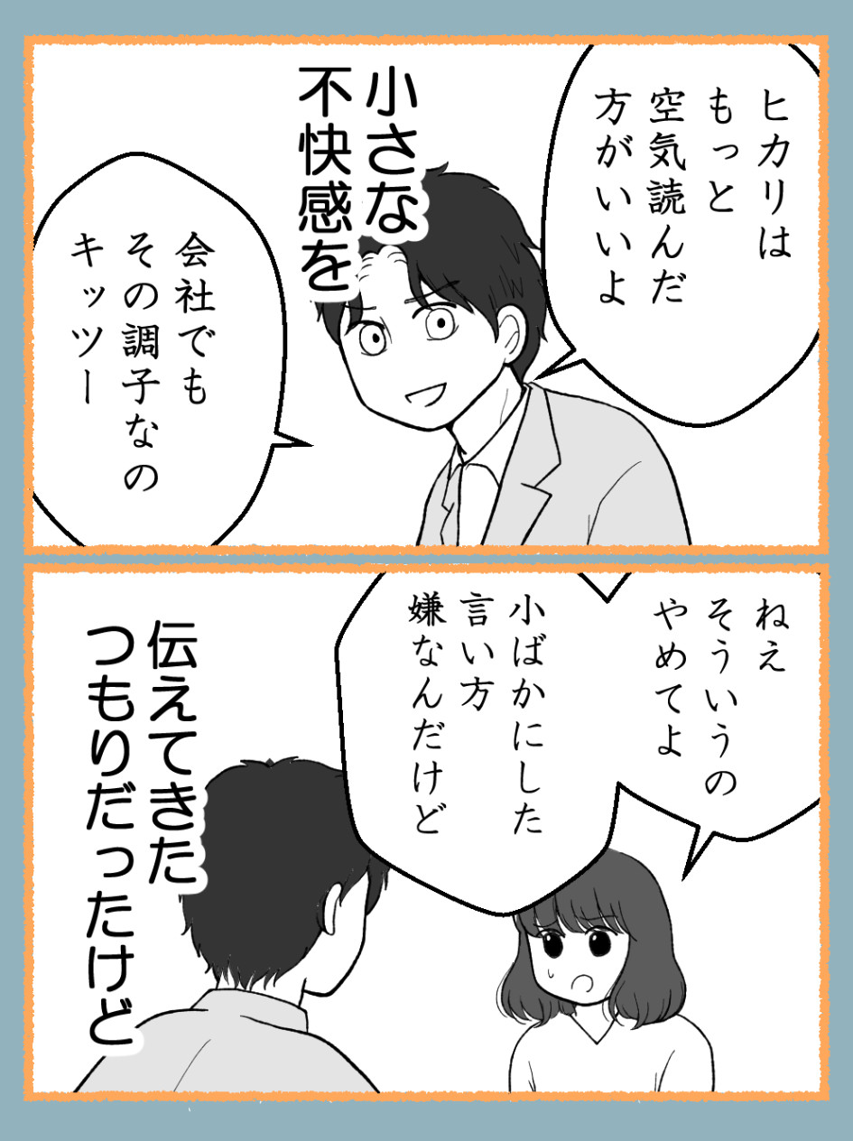 もしかしたら子どもにはしないかもしれないけど、子どもの前でヒカリさんにこんな調子じゃ悪影響すぎる。