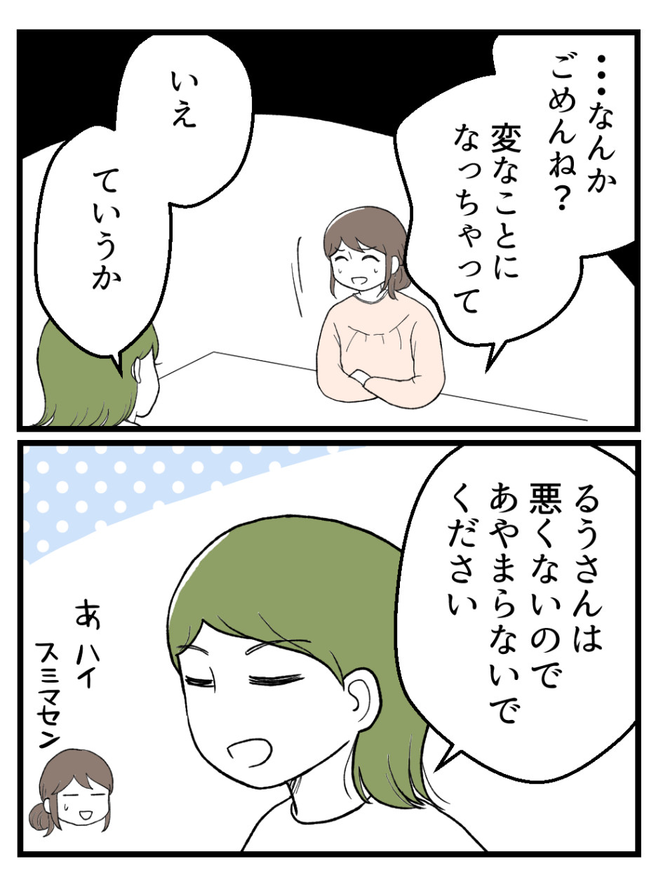 「ごめん」て言葉は、どっちかというとユズさんがるうさんに言うことじゃないかと、私は思ったよ…😂