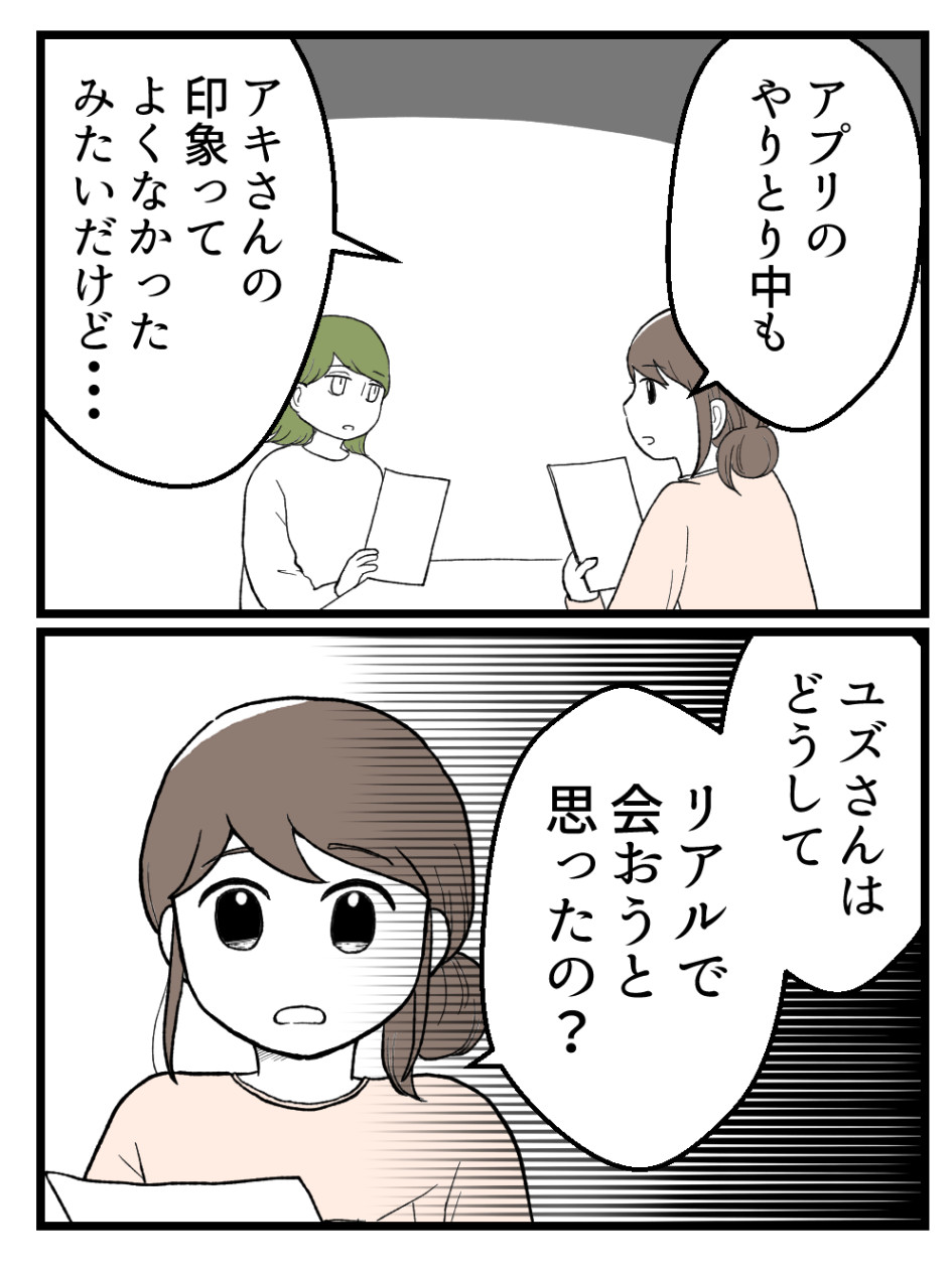 るうさんは嫌な気持ちを話したくて来たのにね。アキさんは場を荒らして帰っちゃうし、残ったユズさんのこと気にかけて余計疲れる時間になってるよ…。