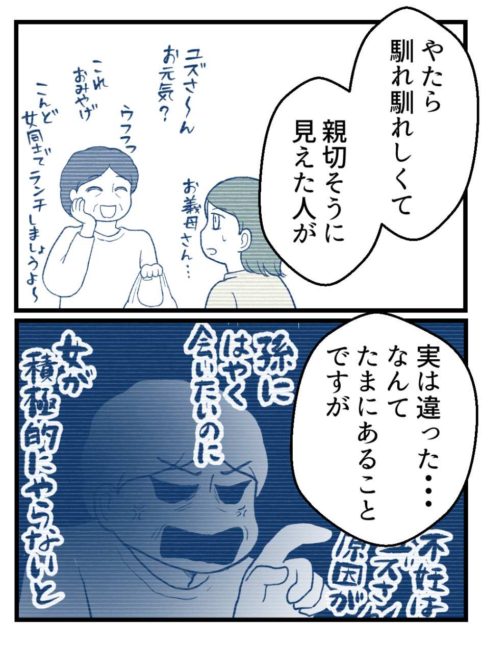 ユズさん夫、妻が嫌な思いしてるのに親とそういう話をしたくないって逃げてるだけなのが腹立つ。波風立てたくないのか知らないがお前の母親だろうが。