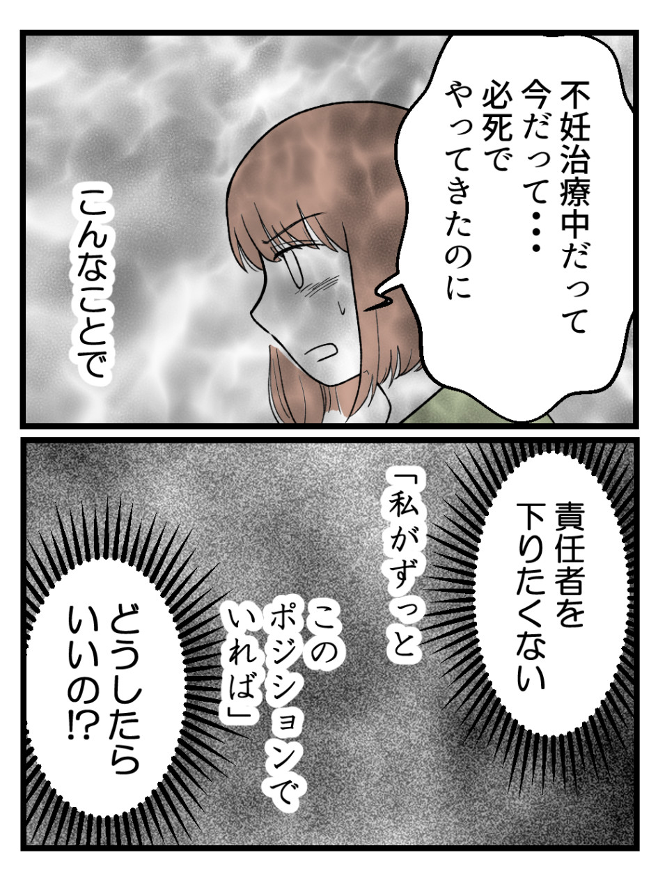 あと自分という妊婦の就労実績と、後輩への防波堤という意味で今後のために引くわけにいかないという気持ちもあるのかも