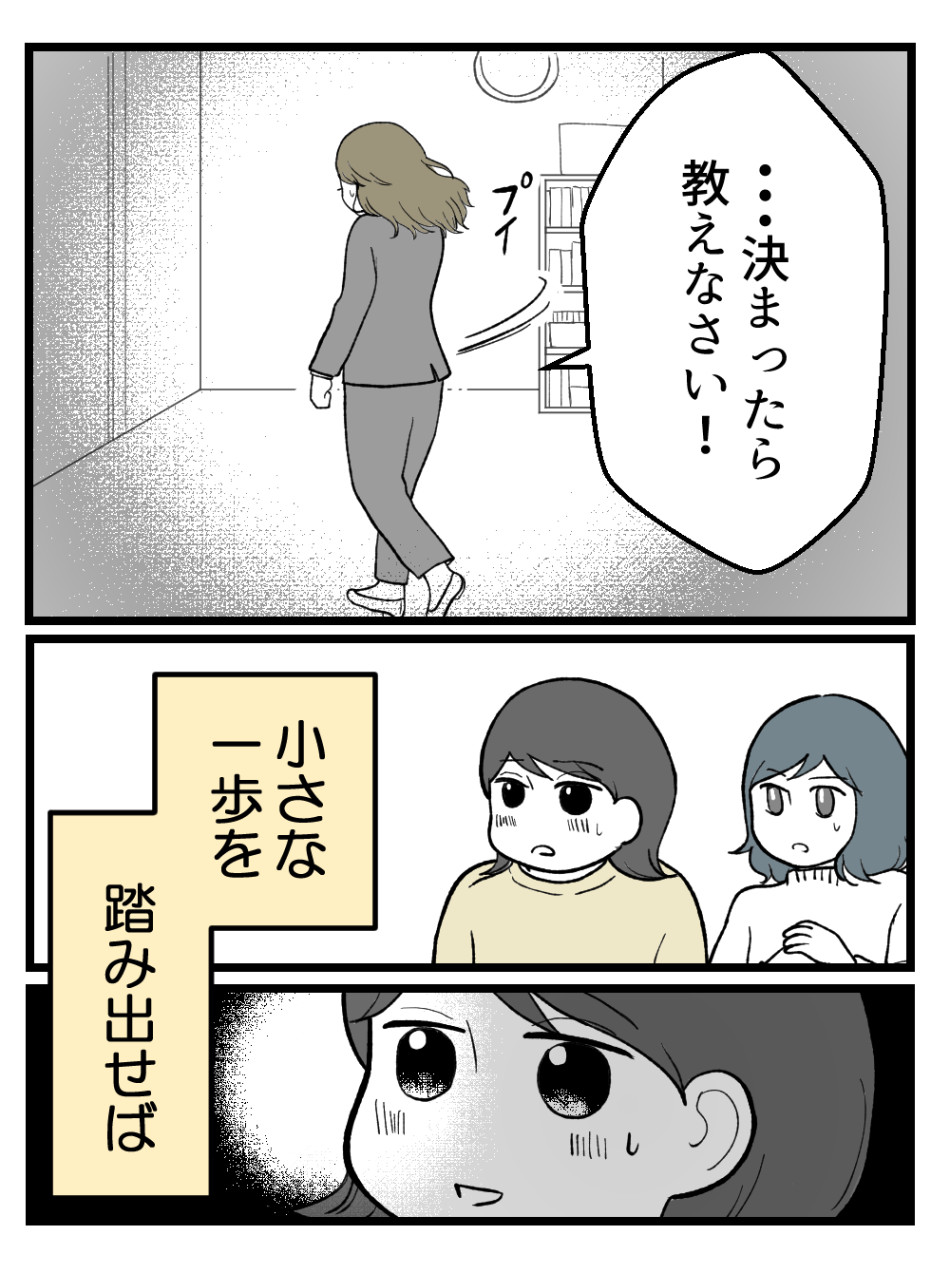 誰か一人が明確に悪い!というわけではなく、スカッと解決はしないけれど、それぞれいる場所は変わってもいい方向に進もうとすることが大切なんじゃないかな…という気持ち。
