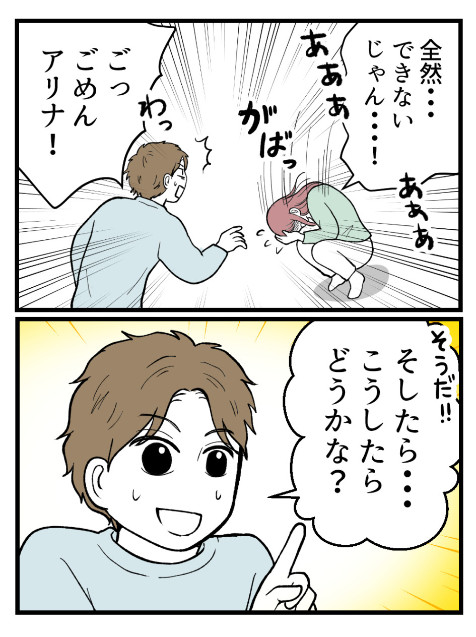 怒るより、できないって打ちひしがれるの良 い作戦かも!少し前進するといいね!