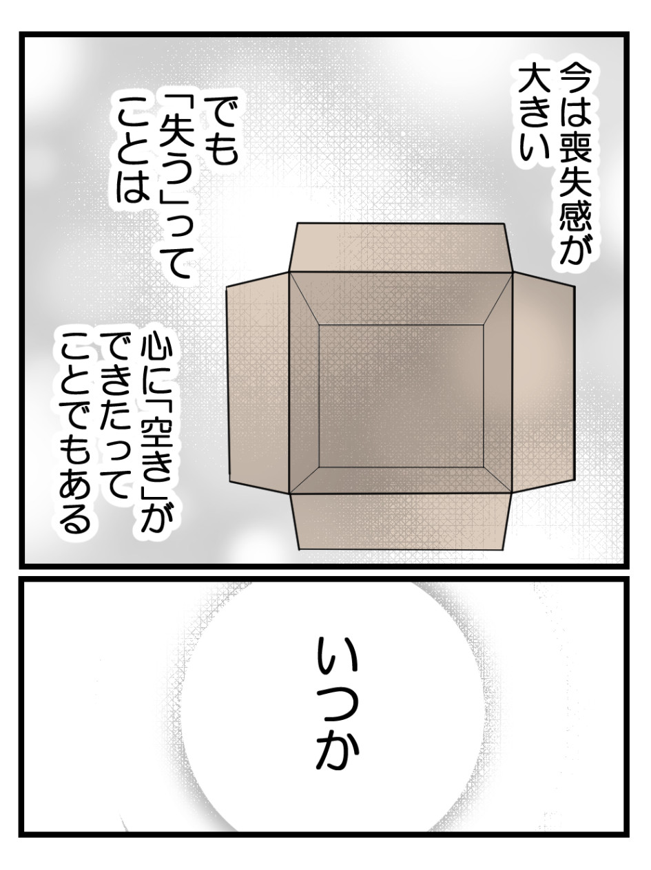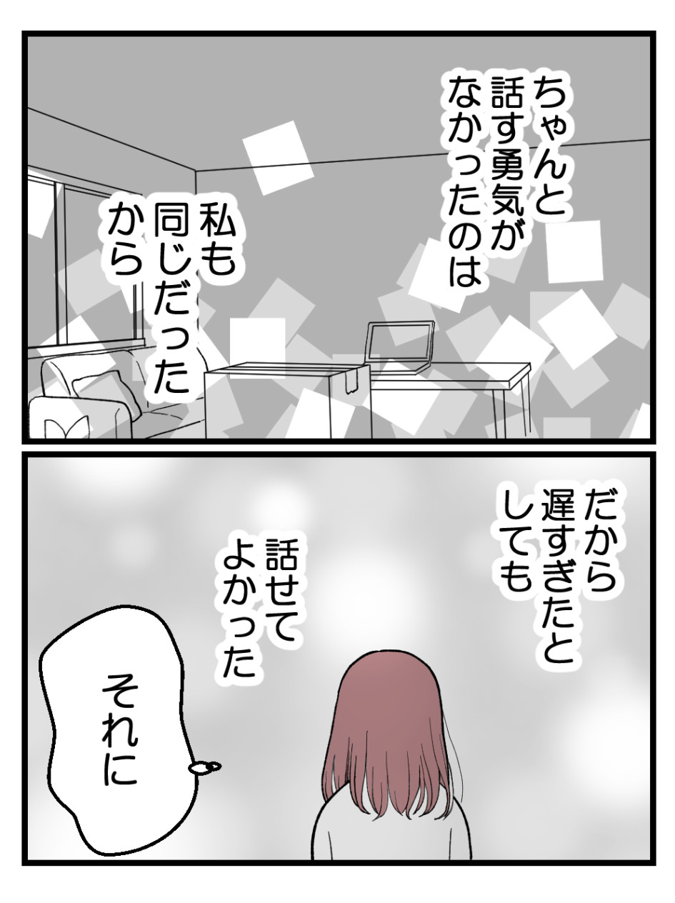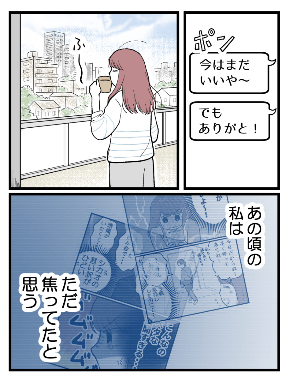 次は焦らず探して。同じ価値観の人、きっと出会えると思いたい!シカオもトラウマから解放されて自由に恋愛してほしいし、お義母さんもいつか孫に出会えるといいね。