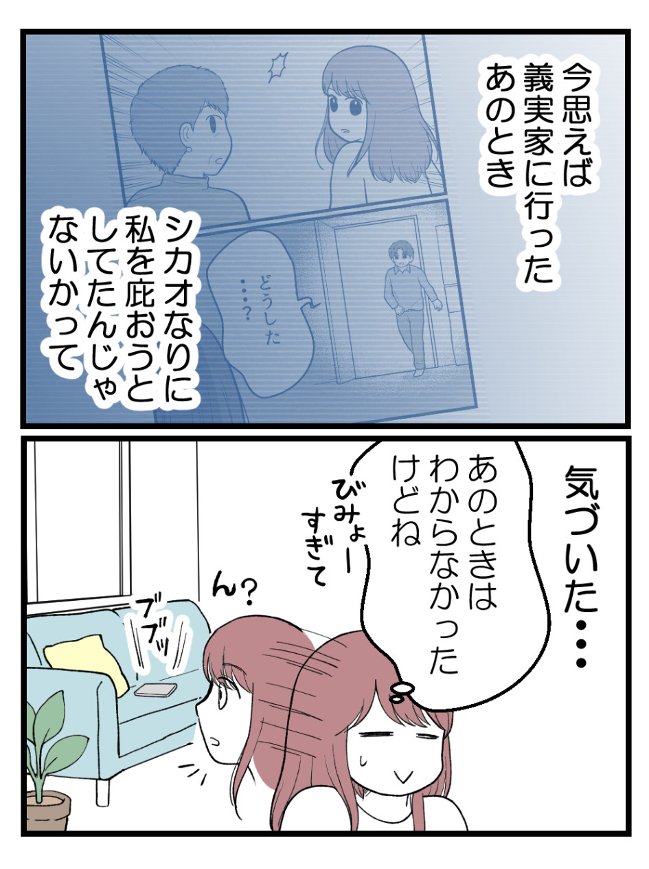 シカオなりに庇おうとしていたとか、真実がどうあれいいように考えられるのすごいなぁ。確かに気付かないふりもできたのに、義母とアリナさんの会話に乱入してたもんね。