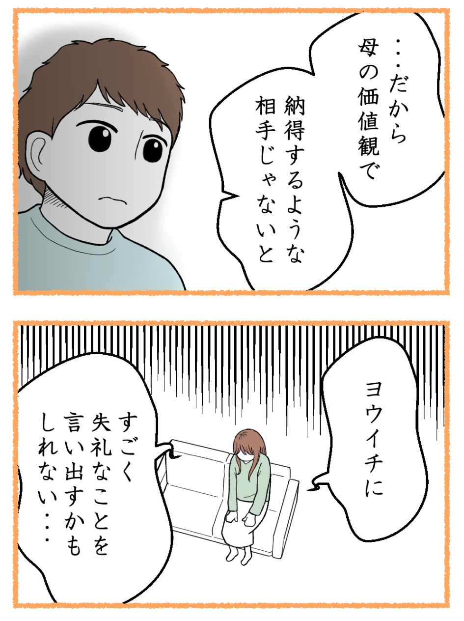 逆にちなつさんが相手の親から年齢や家事、仕事聞かれてまだまだと否定されたり迷惑かけられたらよういちさんを責めるんでしょう。