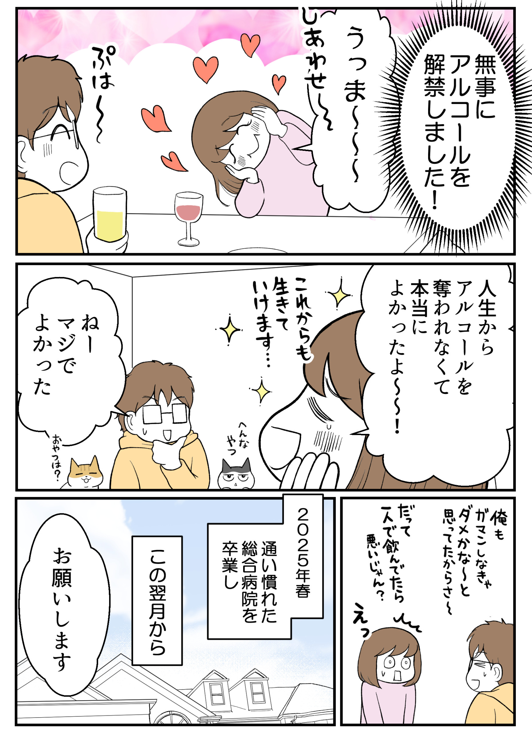 今はお薬と2か月に1回の通院のみですっかり数値が落ち着いているので、このまま食事もお酒も制限なくいけるのでは…といったん安心しております。