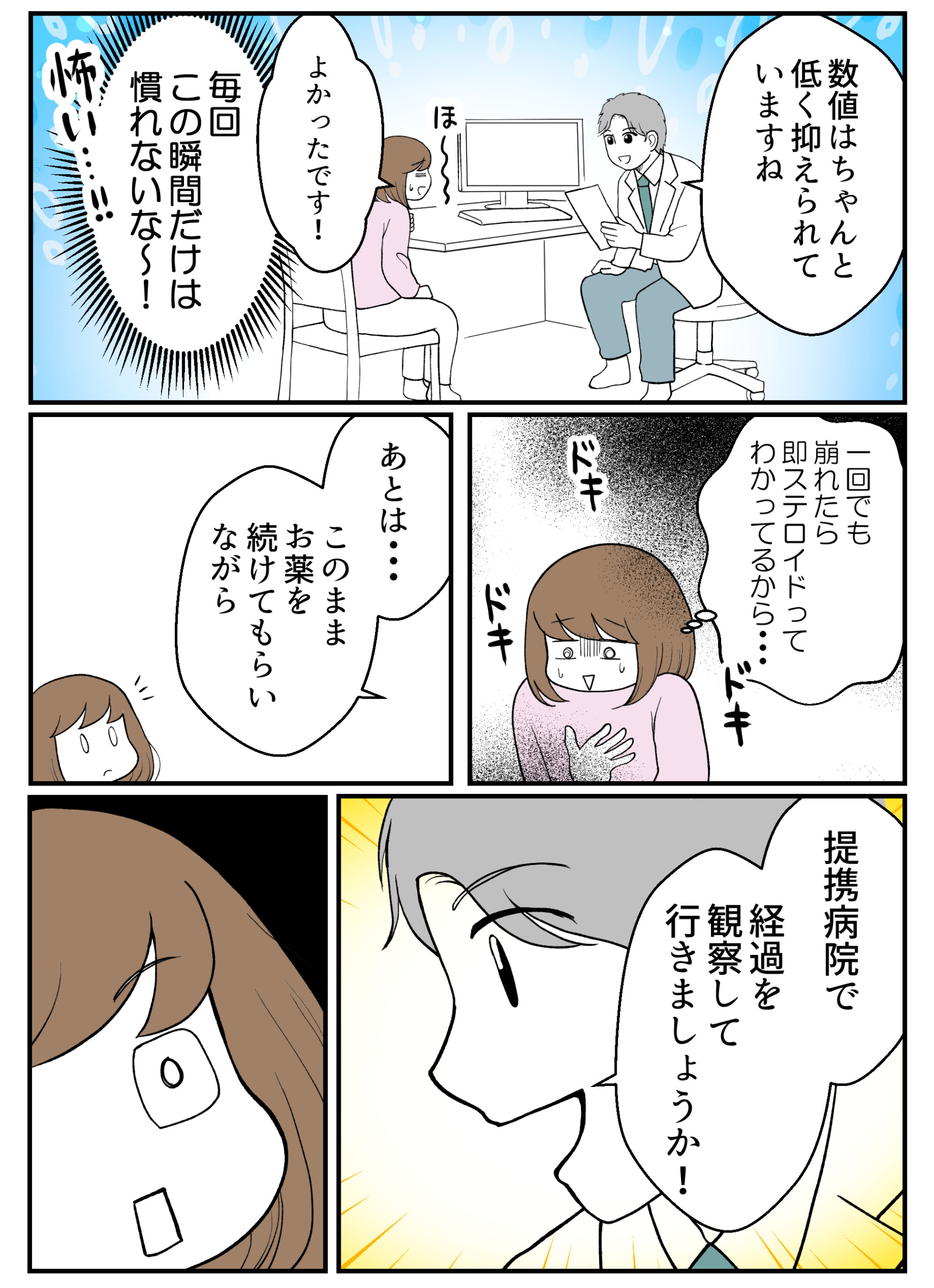 不安とも戦いながらの通院はさぞ大変だっただろうなと読んでいて心が痛くなりました。